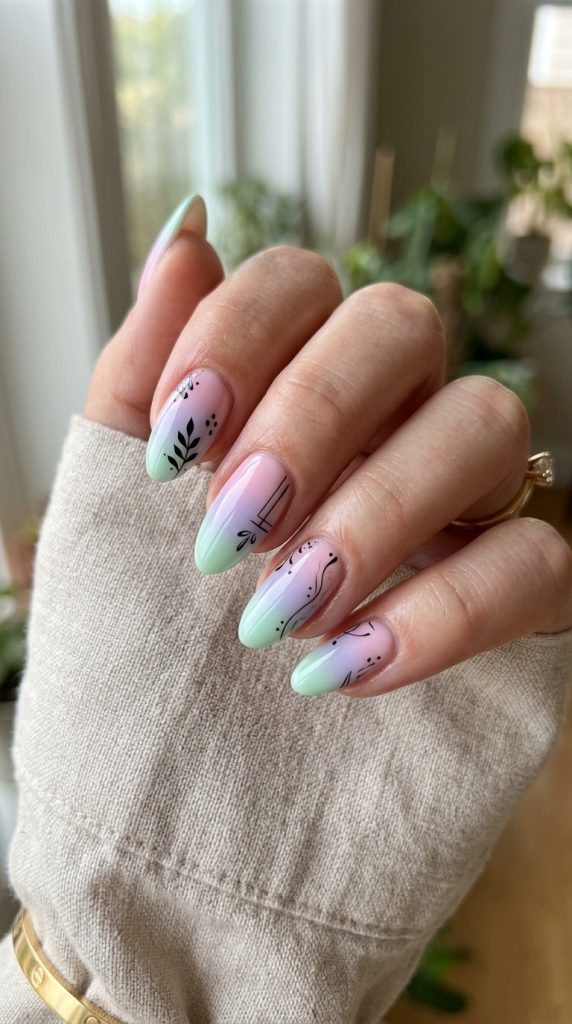 5. Pastel Ombre Nails with Black Accents