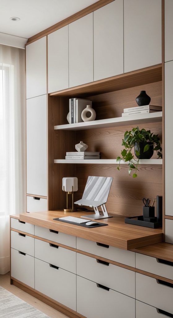 3. Built-In Storage Wall Office System (Hidden Organization Luxury Method)
