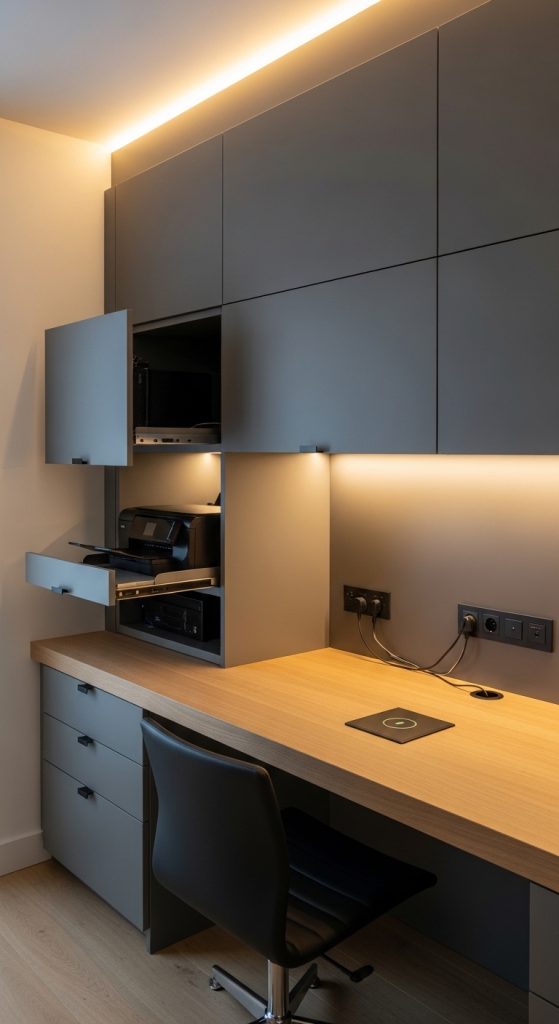 10. Built-In Tech Station Office System (Hidden Workflow Luxury Setup)