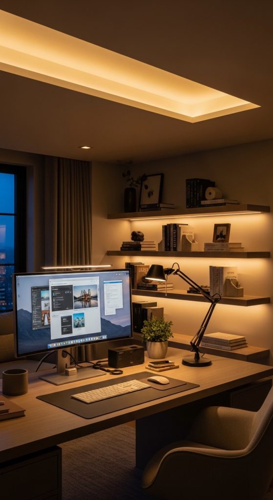 2. Layered Lighting Productivity Setup (Focus + Comfort Balance System)