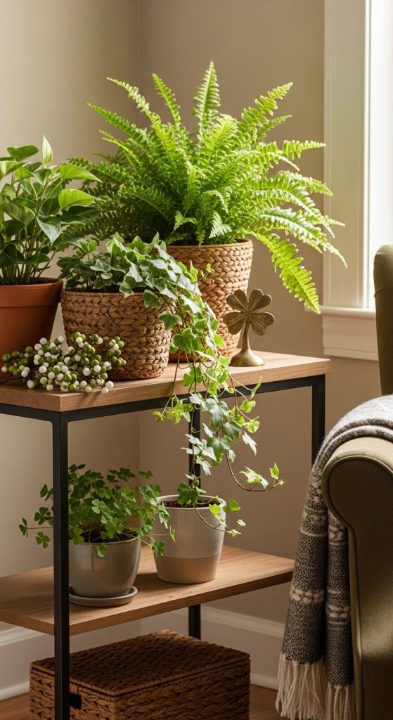In addition to textiles and lighting, incorporating natural elements like potted plants or fresh greenery adds life and texture to your living room. Ferns, ivy, or small shamrocks can be strategically placed to echo the St. Patrick’s Day theme without appearing overly kitschy. These elements also improve visual balance, making a space feel harmonious, lively, and inviting.