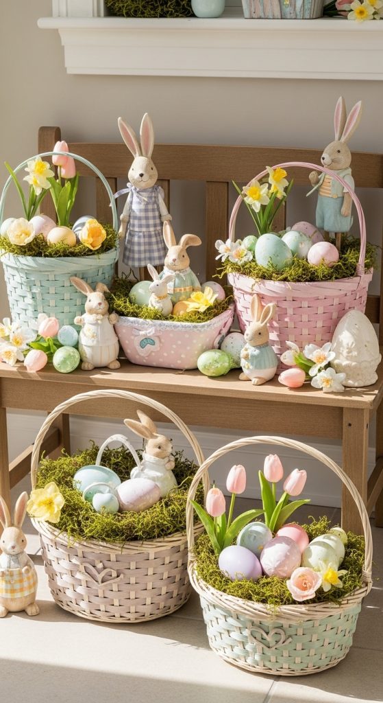 - Arrange bunny figurines among baskets