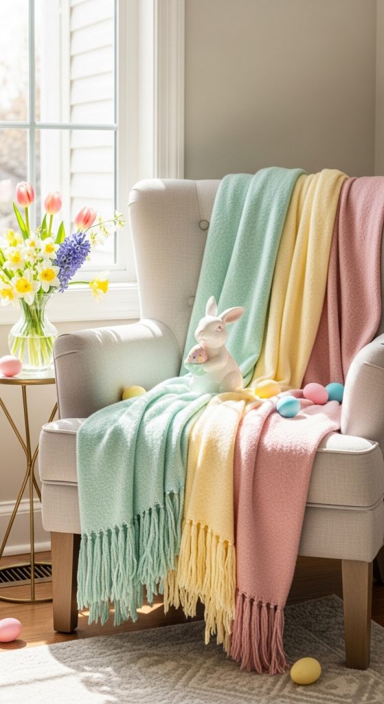 - Drape a pastel throw over the back
