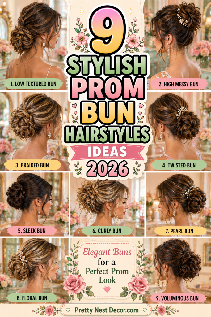 This works best when you want a romantic but slightly structured prom look. It is ideal for people who don’t want a fully messy bun but also don’t want a strict sleek style.